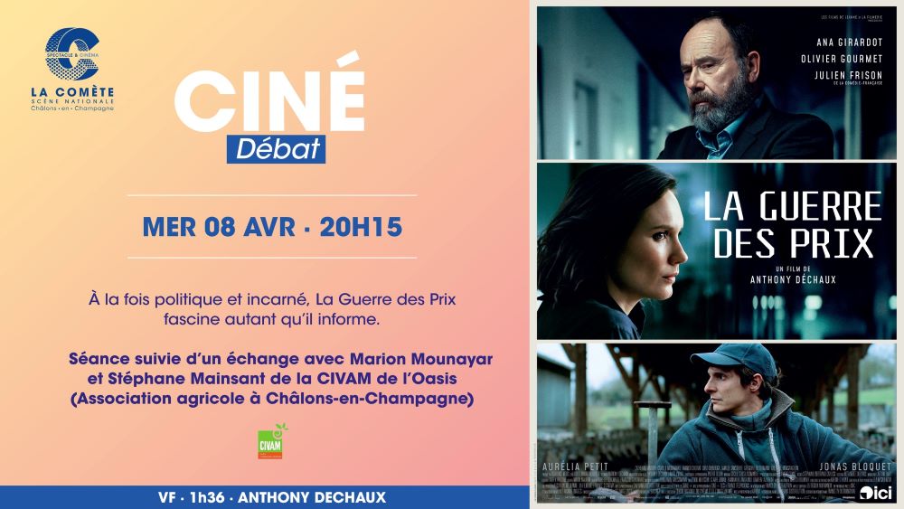 Nous serons présents lors du débat qui suit la projection du film « La Guerre des Prix » le 8 avril prochain à 20h15 au cinéma La Comète à Châlons-en-Champagne ! Ce sera l’occasion de discuter de la réalité de notre système alimentaire et des solutions collectives à mettre...